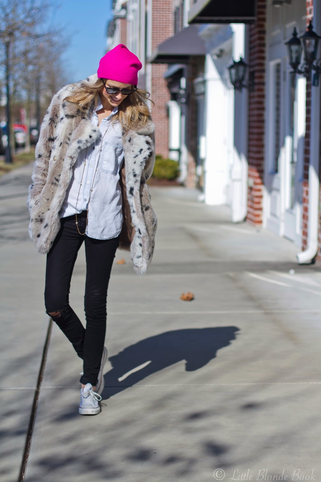 You all have no idea how long I have waited to pull this gem out of the closet! Here at the beach it actually hit freezing temps. Exciting and… not so exciting at the same time. This amazing coat was passed down to me from my aunt, and there are many ways to style your fur coat. Today, I want to show you how to do it in a more casual, chic way.