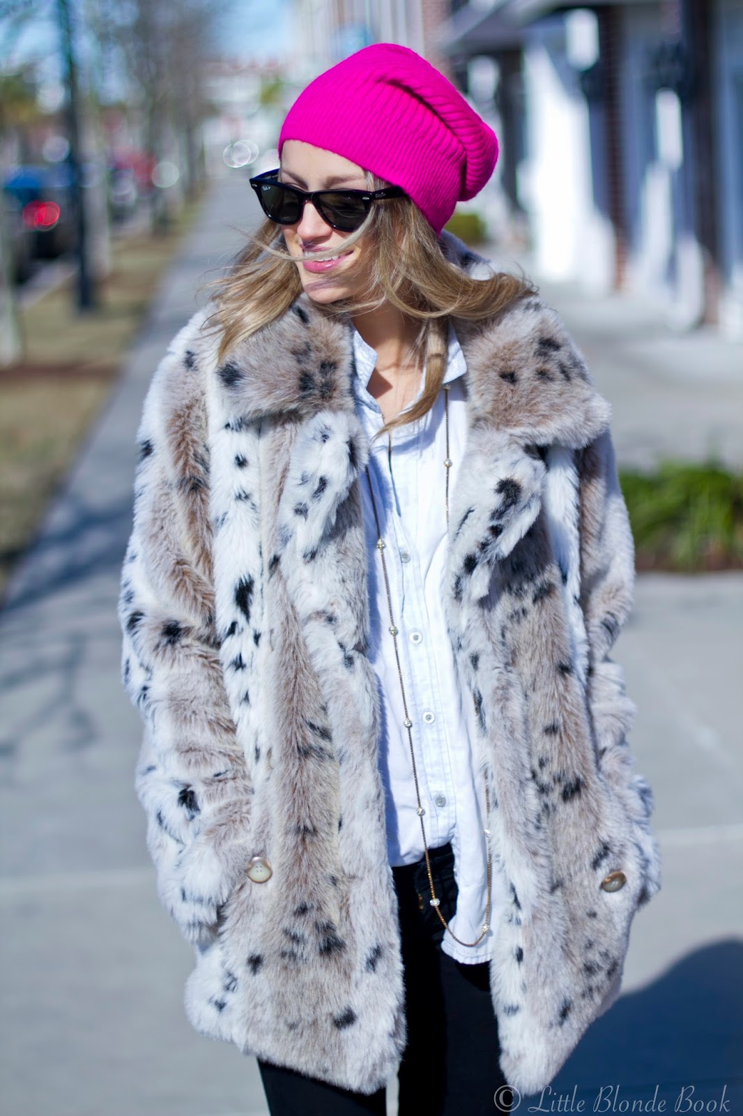 I don’t know why, but this is possibly my #1 favorite look I have done so far. I told you the other day how much inspiration has been brewing up over here at LBB. My most important advice that I could ever give you, never dress for others! Wear what makes you happy. If wearing a huge fur coat and a bright beanie makes you question wether to wear it or not.. ROCK IT!