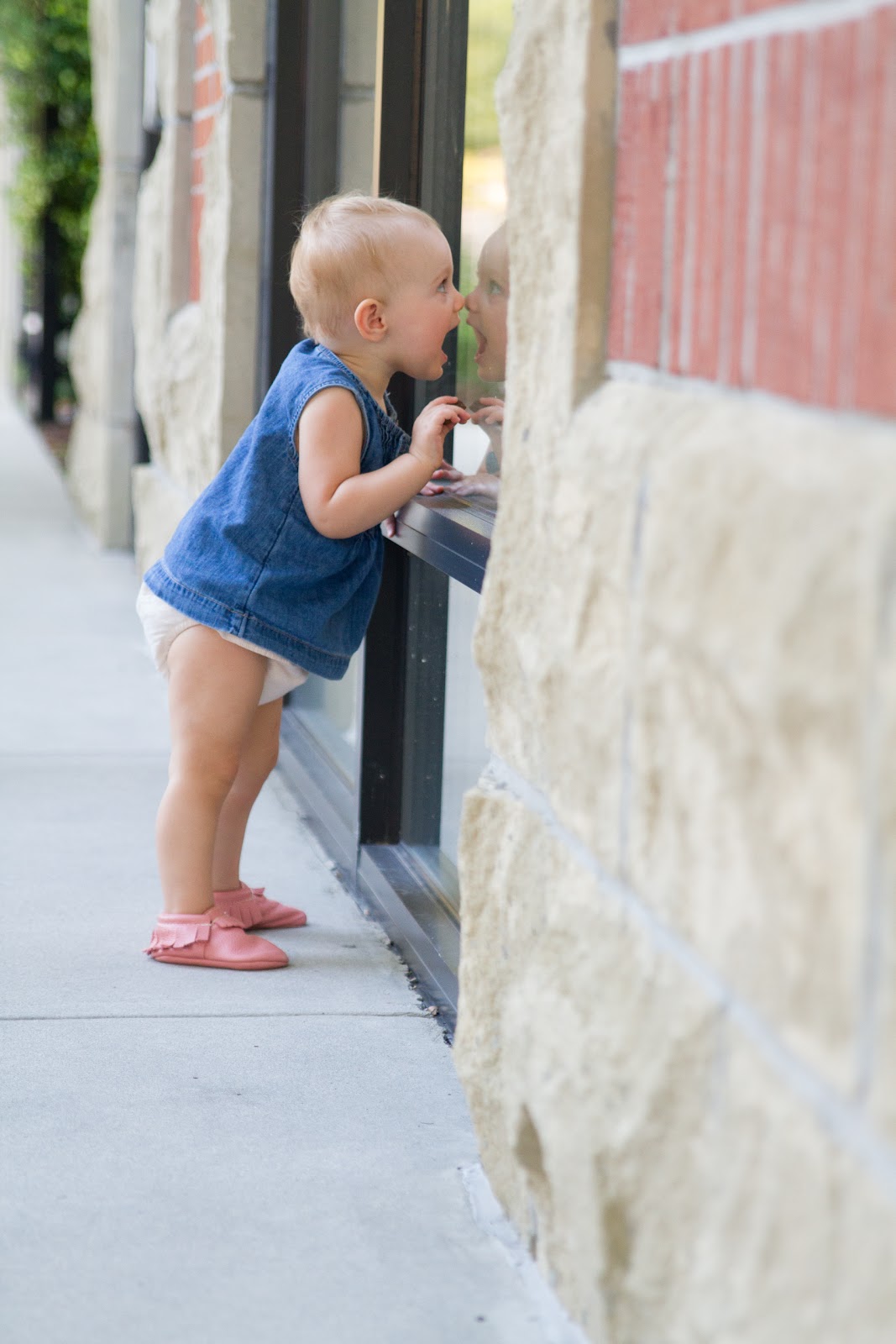 Madelyn was going nuts over her reflection in this window. Kissing herself and everything! haha!