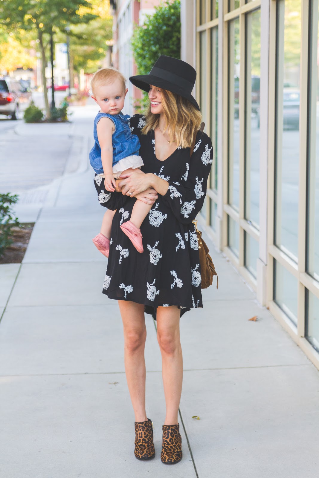 I wore this embroidered, swing dress and leopard bootie situation over the weekend for an evening out with my little family. Totally into anything and everything that is loose and flowy. It’s honestly the best feeling in the world being able to get out of the house again and have my severe “all day morning sickness” behind me. Wearing motion sickness bands that look like sweat bands in public was life changing for me. So embarrassing. I finally have most of my energy back, and I’m feeling less like a lazy mess. For about twelve weeks, my days pretty much ran into each other and it always felt like I was in some sort of bad dream/haze that I couldn’t wake from. An interesting experience feeling so sick, sad, and emotional all at once.
