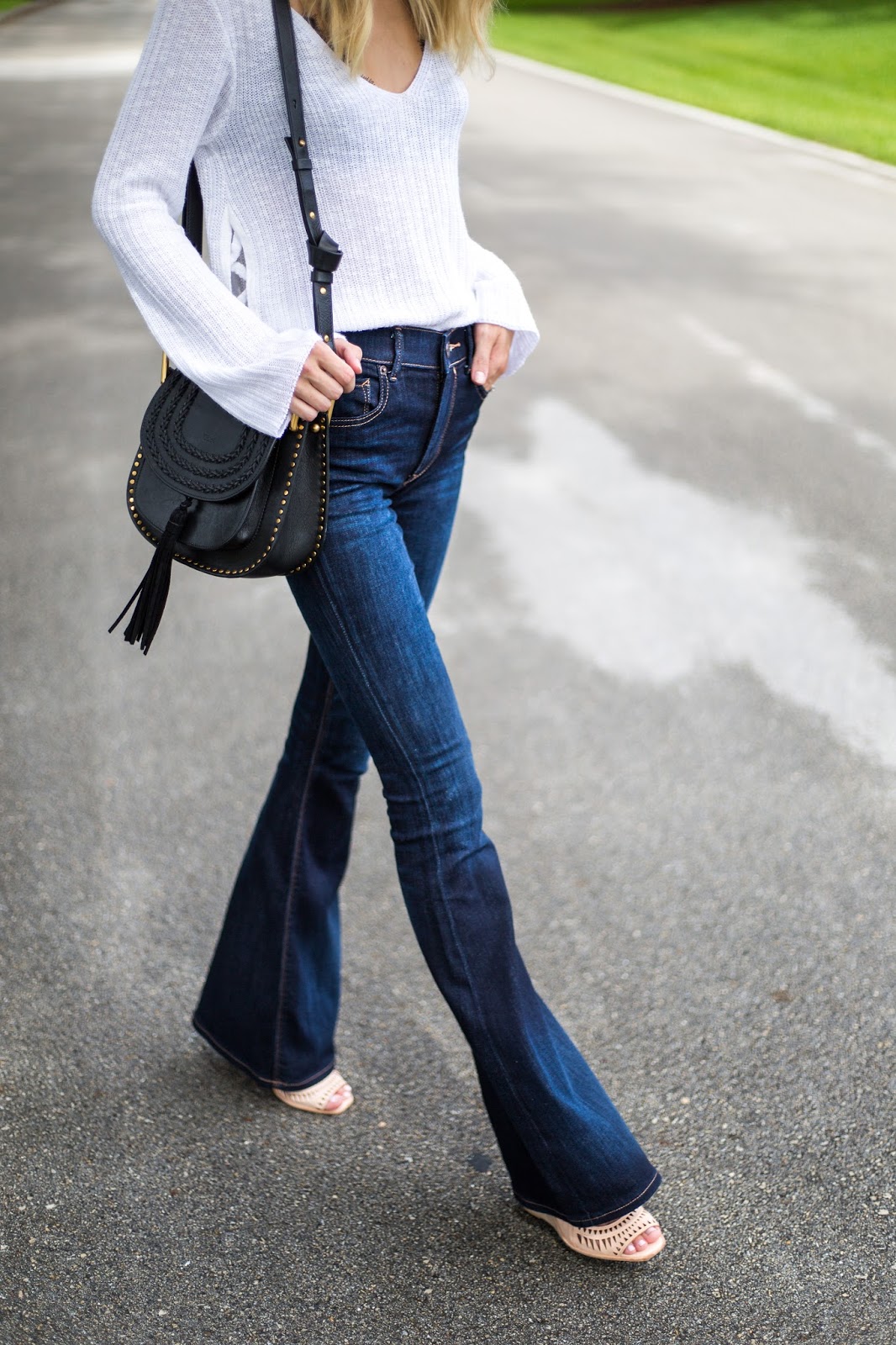 I love the feeling of fresh, new denim. I went into Express and tried on the destroyed skinnies that I had been eyeing online and then saw these flares and knew I would leave with them! Actually, I left with both. Oops. Everyone in the store started trying the flares on when they saw me walk out of the dressing room. It’s hard not to want to join in on the fun when you see something super cute. These flares are instantly slimming and adds height to everyone.