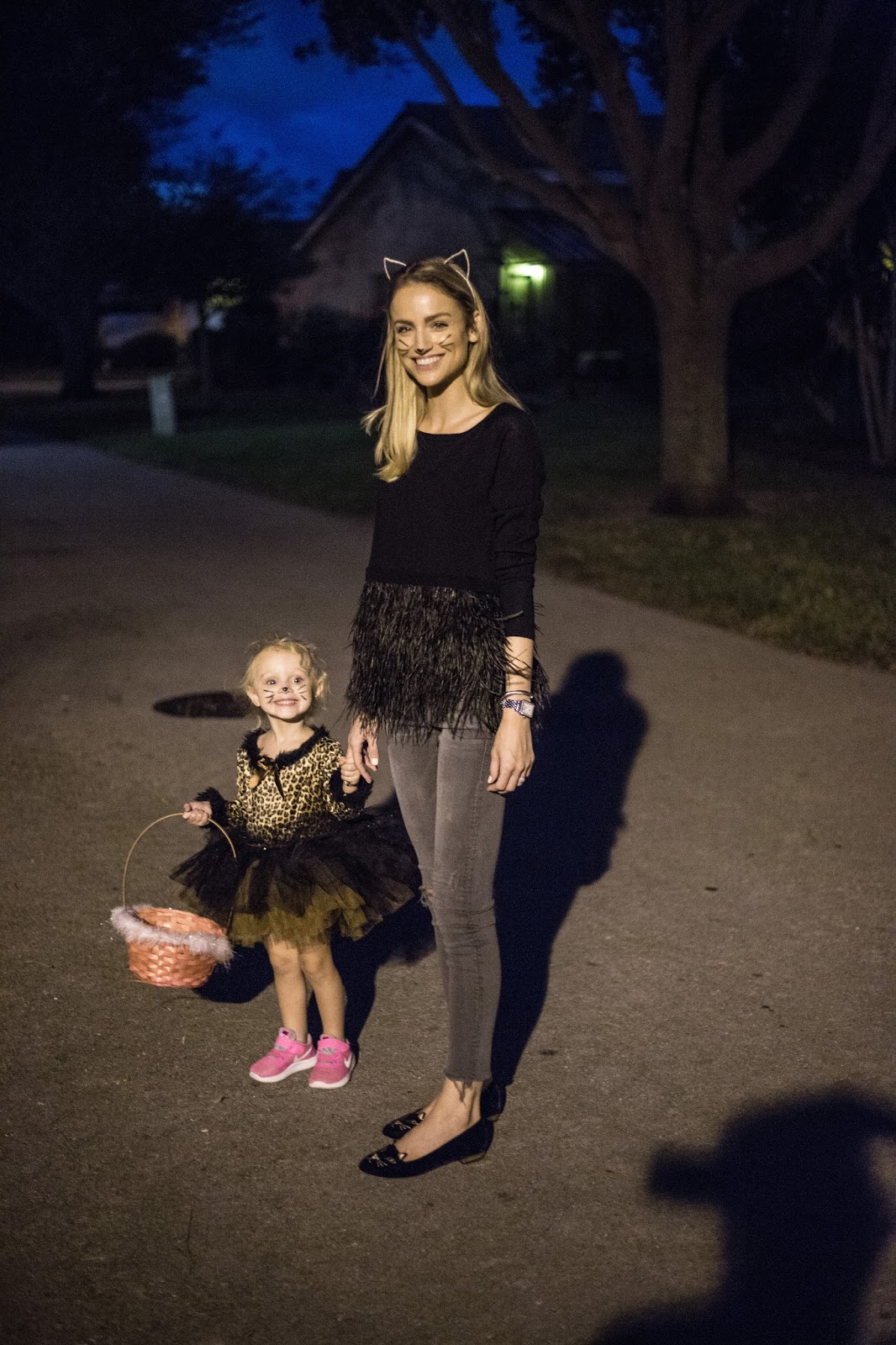 We headed out for treats, and seriously had so much fun. Madelyn was so cute and said “Thank you” at every house.. of course everyone died over how cute she is and wouldn’t stop giving her candy. No, seriously.. people were shoving handfuls of candy in her basket ha ha!