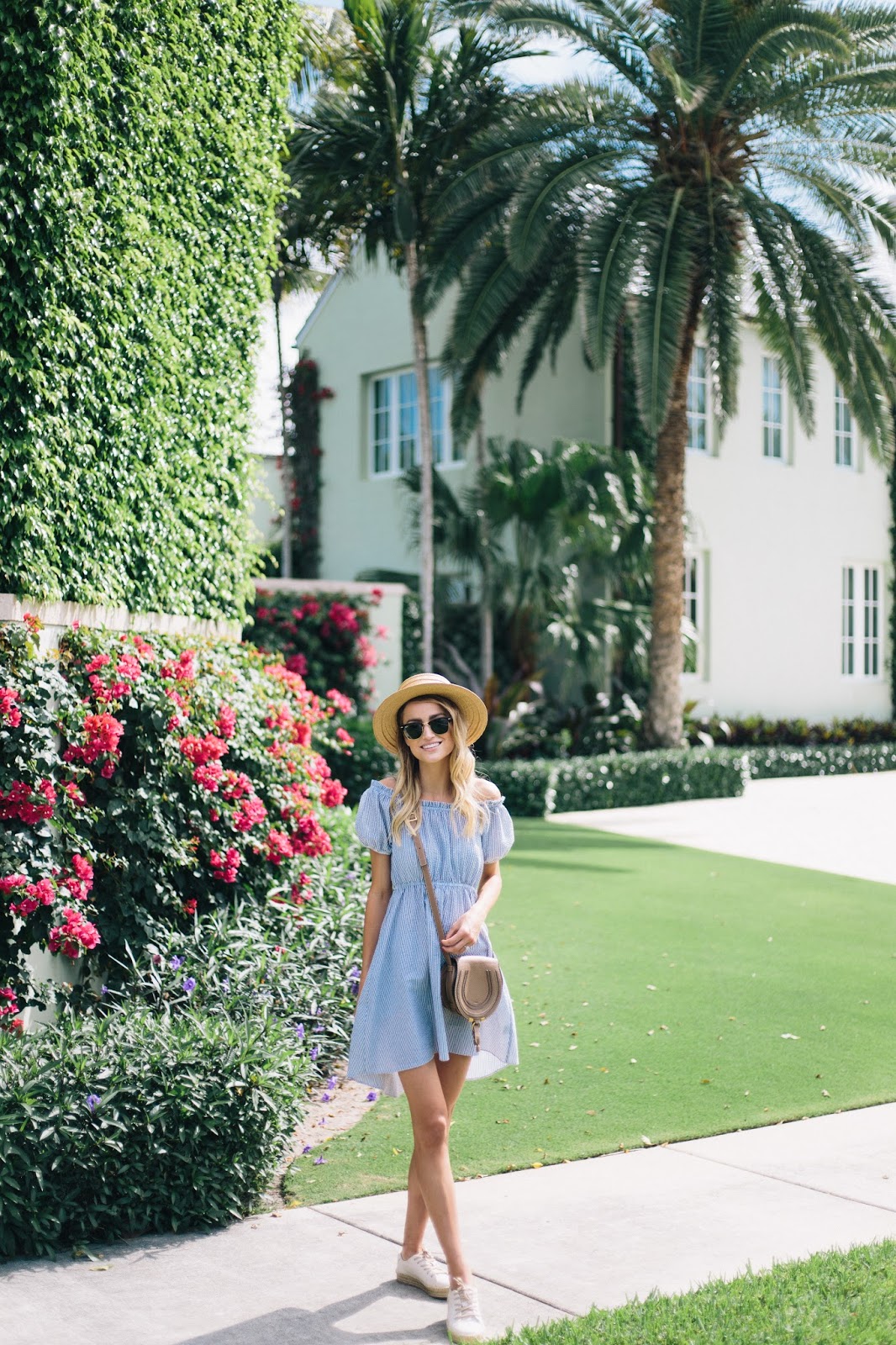 If you’ve already seen this look on my Instagram, have no fear! We shot new content over the weekend, but I couldn’t help myself. I had to post this outfit on the blog too! this adorable seersucker dress is on sale for $66 right now and also comes in white. I love the high low design and for the first time, I’ve found a dress where the “off the shoulder” style actually stays off the shoulder and doesn’t continuously pop up. Plus, I was able to wear the sleeves on my shoulders and it was just as cute!
