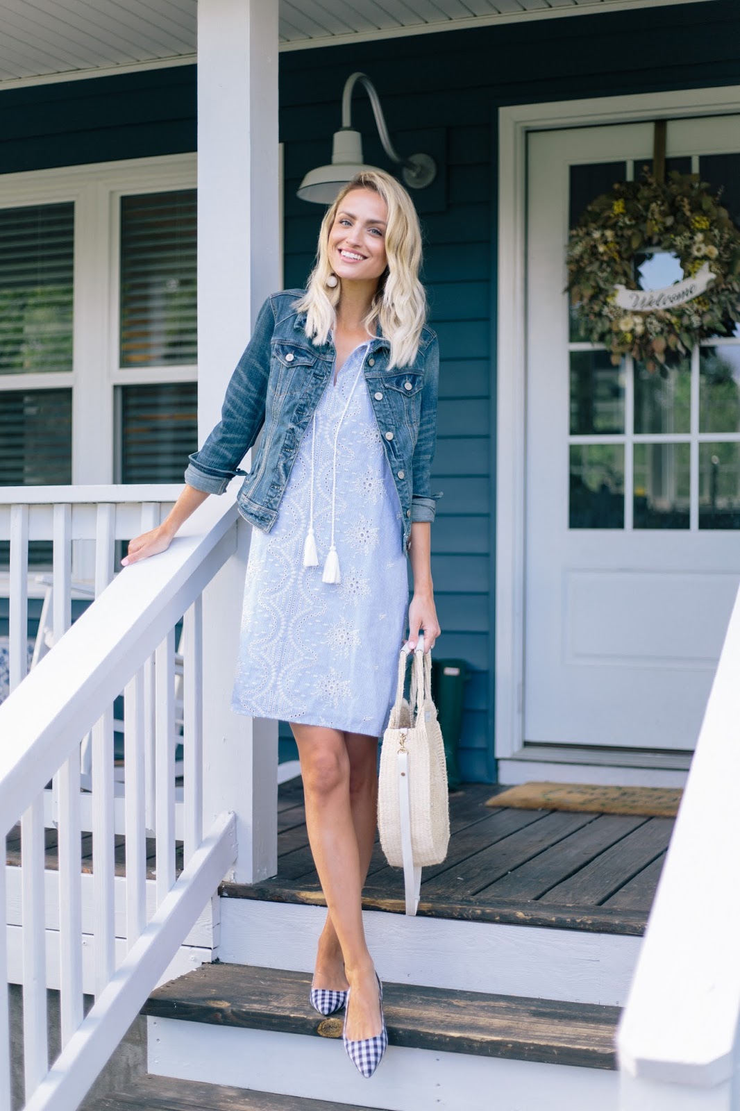 This Karen Kane dress is so beautiful and feminine with its embroidery and soft, spring style. Perfect for running out with a light jacket for errands, coffee, or a date with your loved one. Try it with a crisp pair of white sneakers or a wedge sandal. Throw a knit cardigan, lightweight shawl or denim jacket on top.. or wear alone! It has been raining, gloomy and a bit chilly for bare arms this week so I opted for a denim jacket. We just missed the rain by a few moments to shoot this and I’m so excited to see our forecast showing sunshine for almost a week straight starting today. I definitely plan on spending my weekend outside with the kids, and working in the garden.