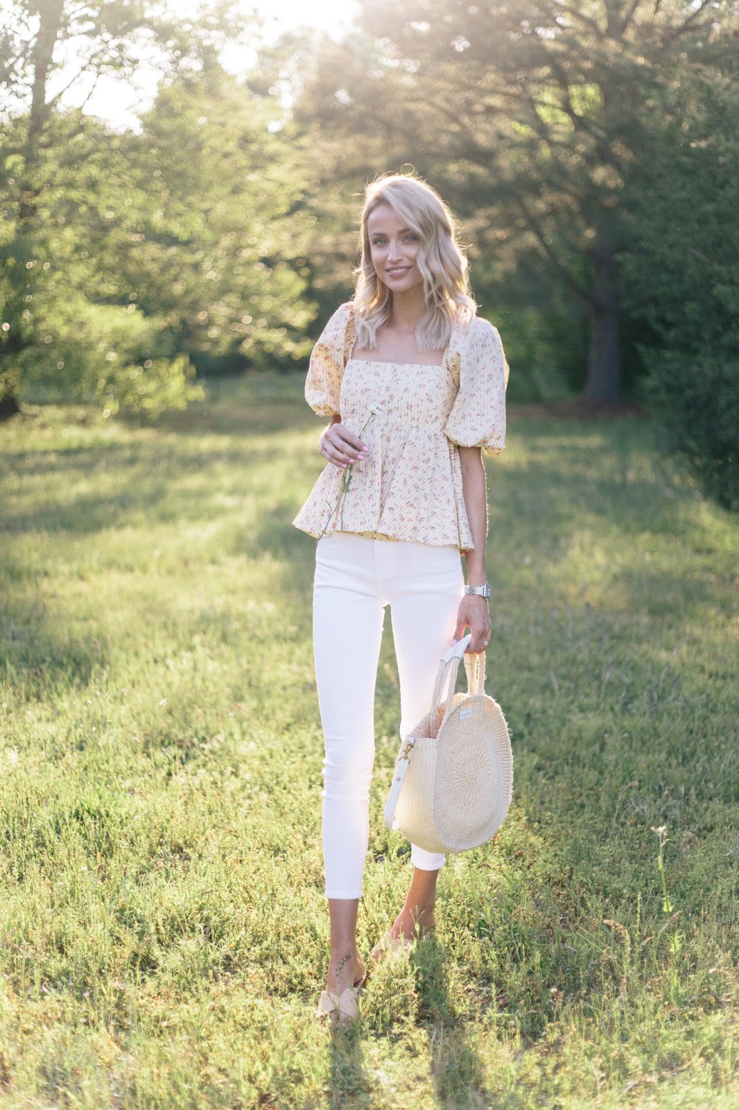 1. I’ll start with this Petersyn blouse! It’s a unique style that I don’t see too often. Which makes me really happy, because I feel everyone is starting to look the same. I love being able to stand out a little bit, but the print is a subtle floral, and I’ve never owned a yellow top before. I think it’s sweet and feminine and pairs well with white or regular wash denim.