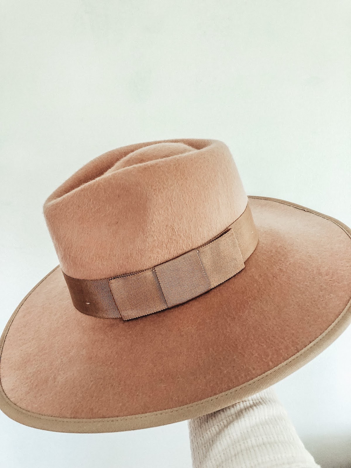 Chambray ruffle dress (TTS) , Longline cardigan (TTS) , Wide brim hat (I have XS) , Booties (Tortilla suede color, TTS)